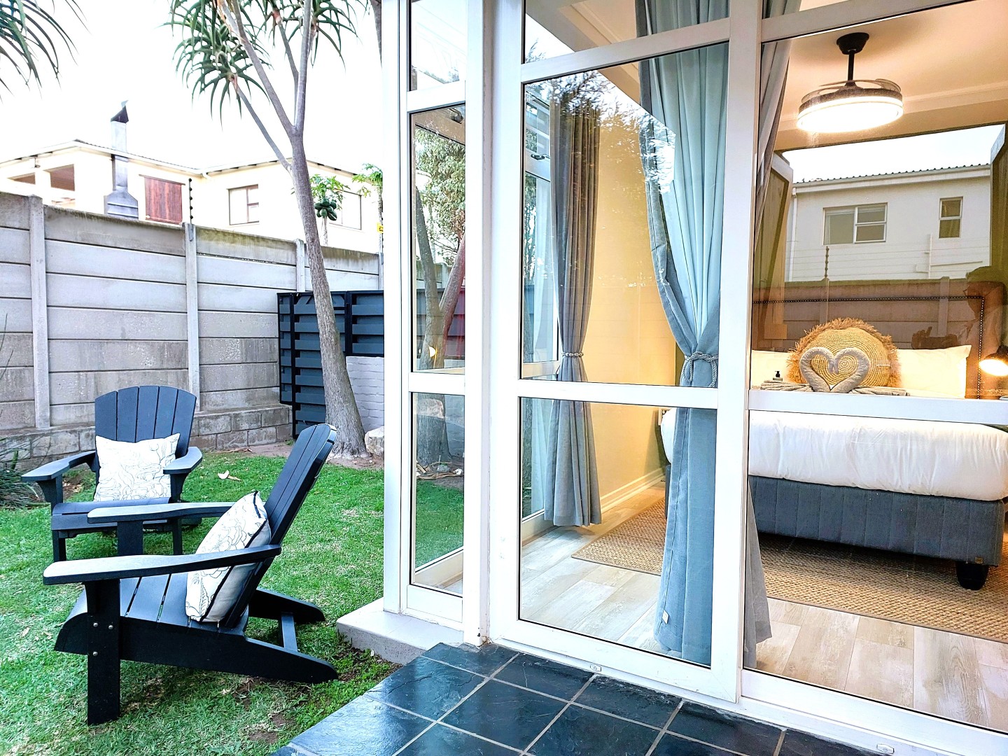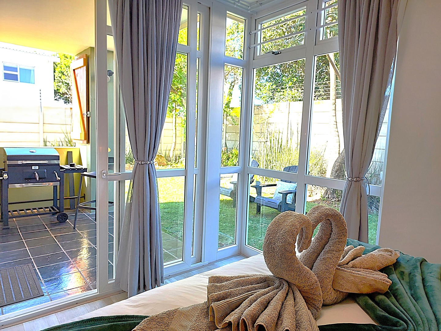 - Amenities: Babysitter Recommendations, Baking Sheet, Barbecue, Barbeque Utensils, Board Games, Body Soap, Ceiling Fan, Check In Option, Childrens Books And Toys, Cleaning Products, Cleaning With Disinfectants, Coffee, Coffee Maker, Contactless Checkin, Cooking Basics, Crockery Cutlery, Deck Patio, Desk Chair, Dining Table, Enhanced Cleaning, Essentials, Extra Pillows And Blankets, First Aid Kit, Free Parking, Freezer, Fridge, Garden, Gated Property, Hair Dryer, Hangers, High Touch Surfaces Cleaning With Disinfectants, Hot Water, Internet WiFi, Invoice Provided, Iron, Ironing Facilities, Kitchen, Laptop Friendly, Laundromat Nearby, Linens, Lock On Bedroom, Microwave Oven, Office, Outdoor Seating, Oven, Pots Pans, Private Entrance, Room Darkening Shades, Shampoo, Shower Gel, Single Level, Smart TV, Smoke Detector, Stove, Surveillance, Toaster, Toiletries, Towels, TV, Water Kettle, WiFi Speed 25, Window Guards, Wine Glasses
